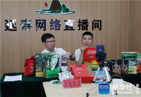 ↑7月22日,在黑龙江省延寿县,工作人员通过网络直播推销县里的农产品。新华社记者 王春雨 摄