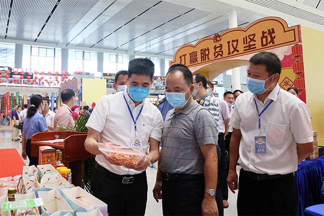 9月26日,自治区农业农村厅副厅长文信连、中国铁路南宁局集团有限公司副总经理刘希明出席南宁东站中秋穿月市集暨扶贫产品展销会活动。活动由自治区农业农村厅、中国铁路南宁局集团有限公司联合主办。